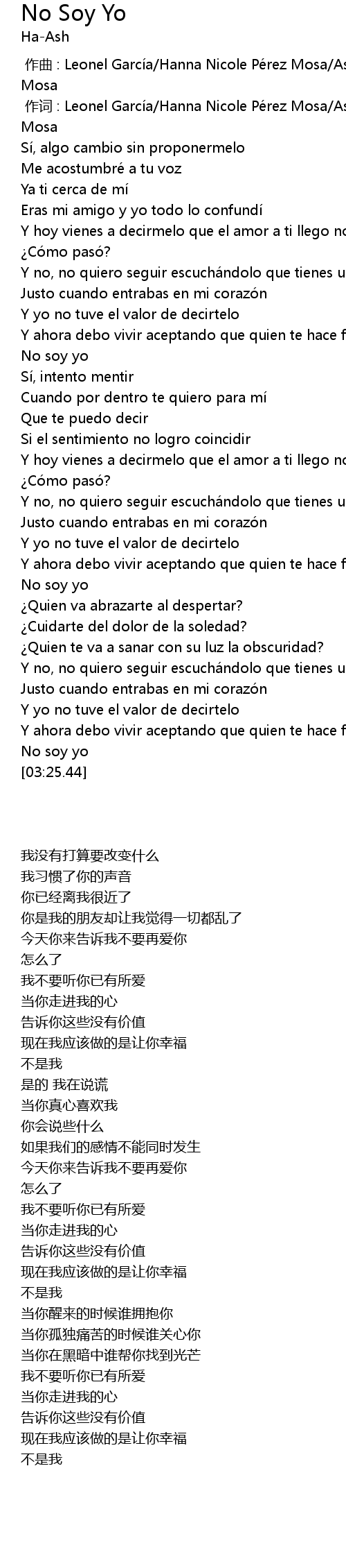 | [02:51.68] | Y no, no quiero seguir escuchándolo que tienes un amor |