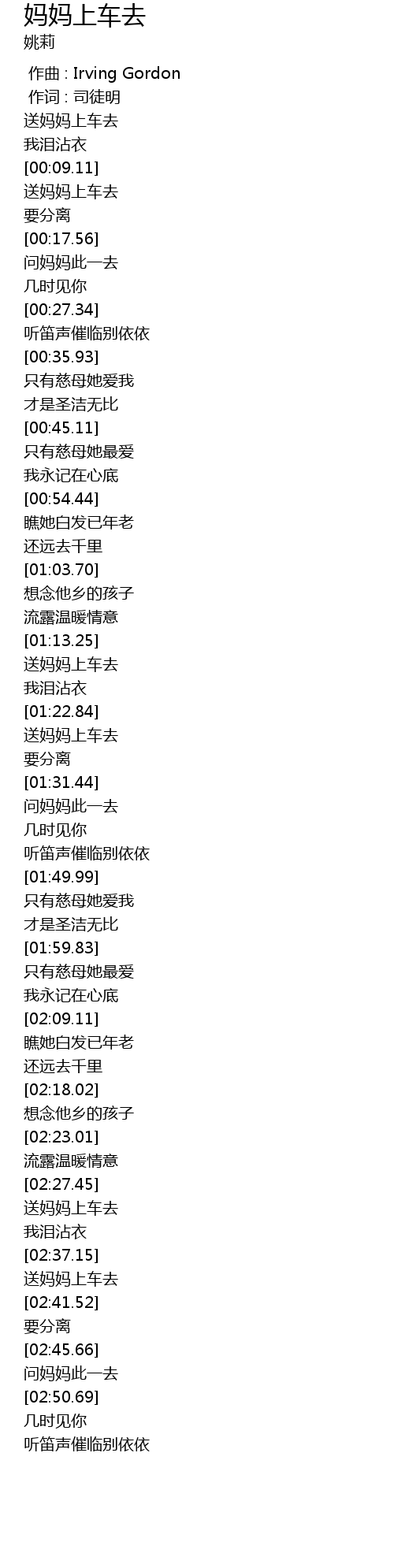 | [02:37.81] | sòng mā mā shàng chē qù |