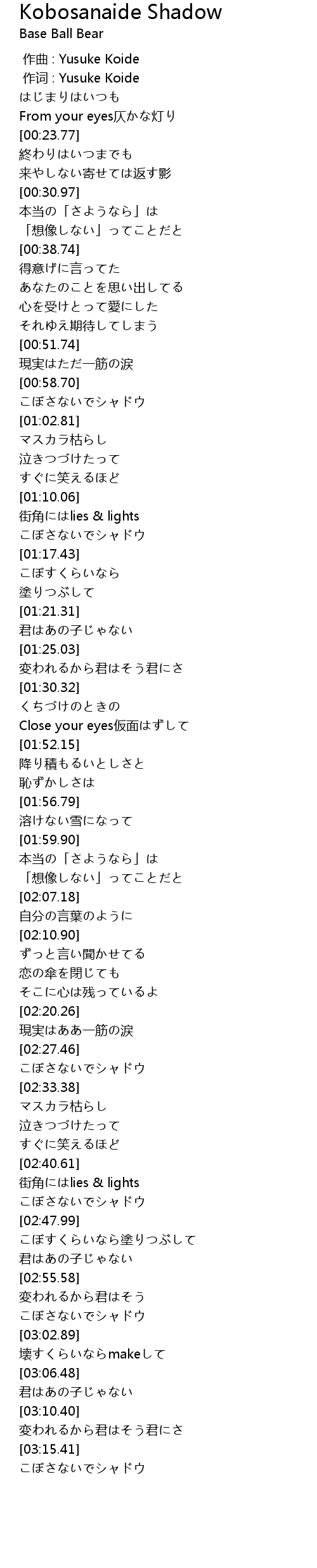 作词 : Yusuke Koide |