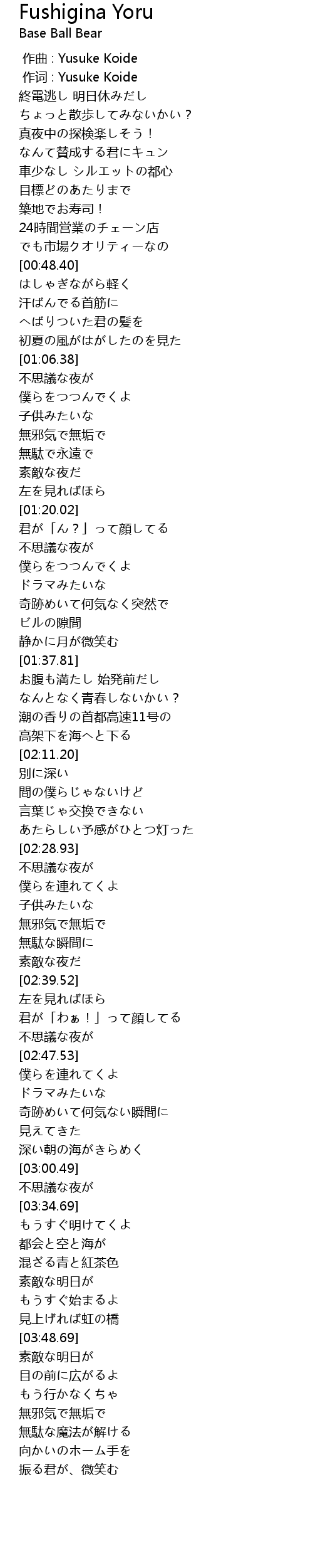 | [00:01.00] | 作词 : Yusuke Koide |