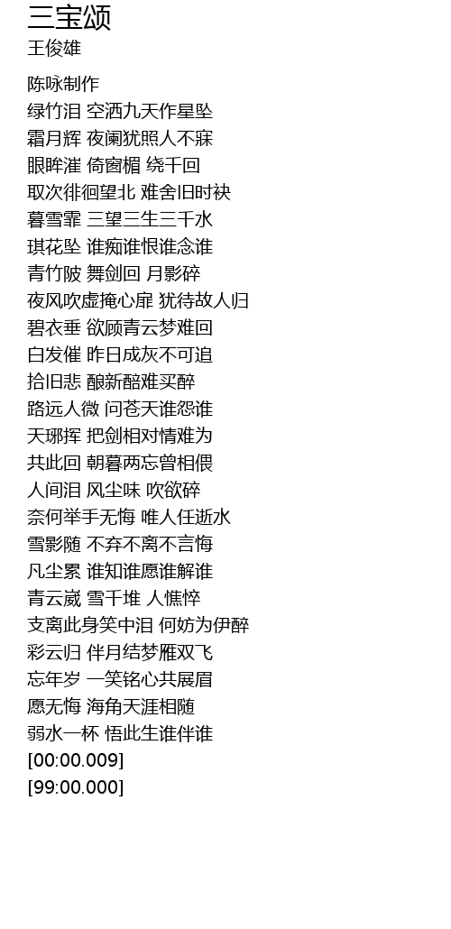 | [00:46.55] | 暮雪霏 三望三生三千水 |