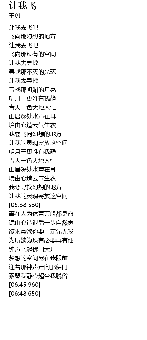 | [01:50.160] | 让我去飞吧 |