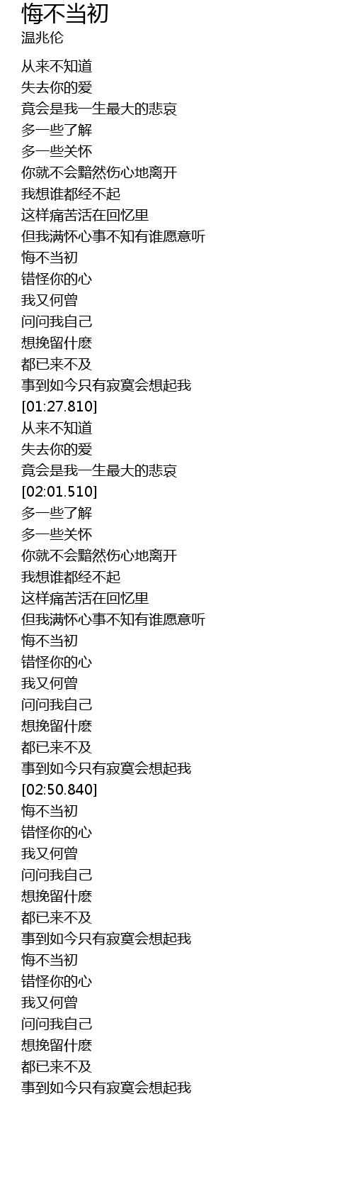 | [00:33.300] | 竟会是我一生最大的悲哀 |