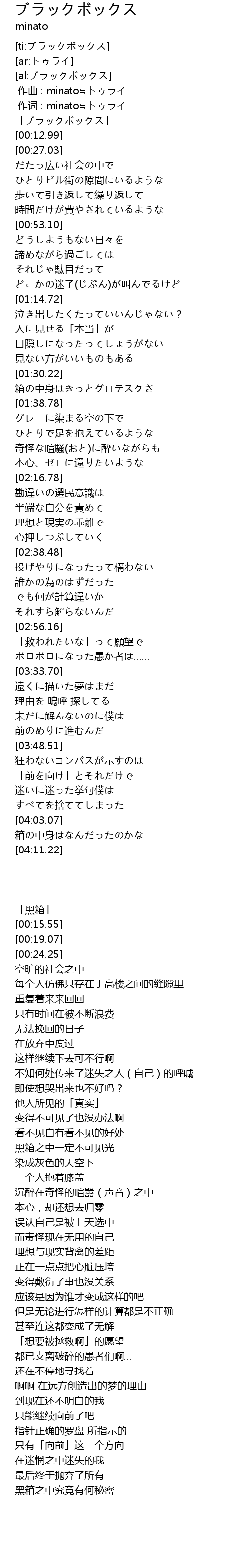 | [00:01.12] | 「ブラックボックス」 |