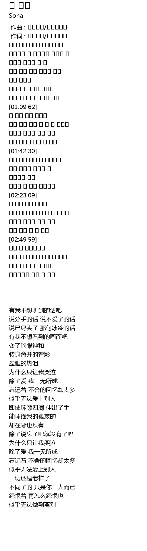 [02:16.82] 잊으란 말 밖엔 없는가요