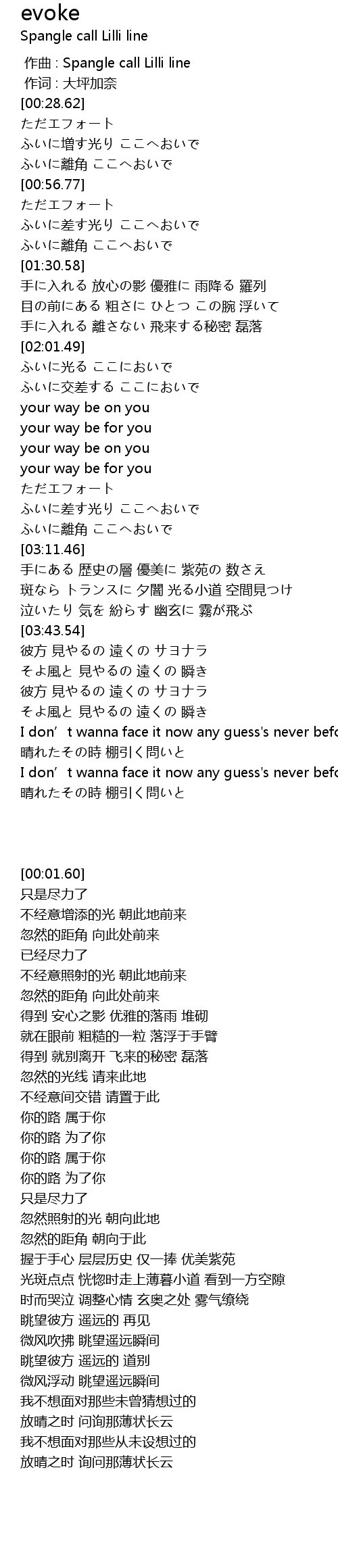 | [00:00.00] | zuo qu : Spangle call Lilli line |