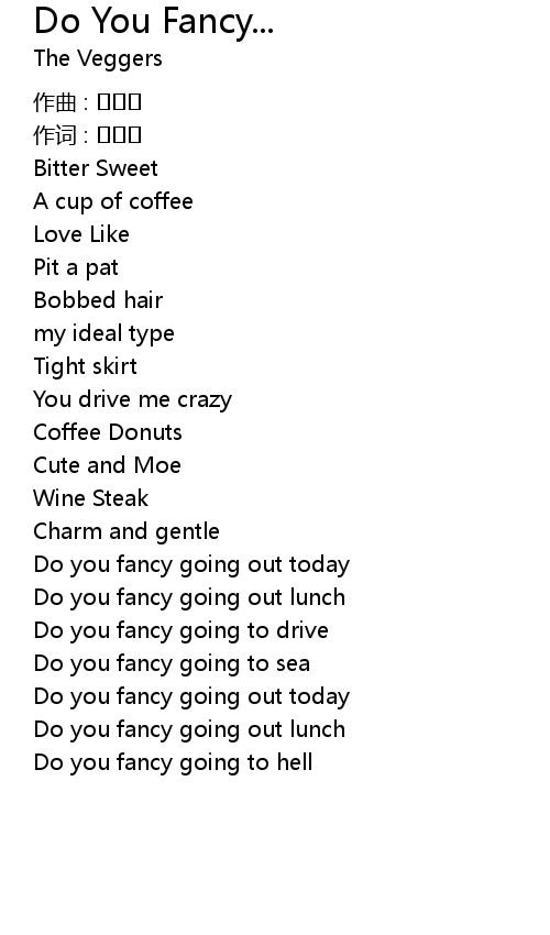 | Song | Do You Fancy... |