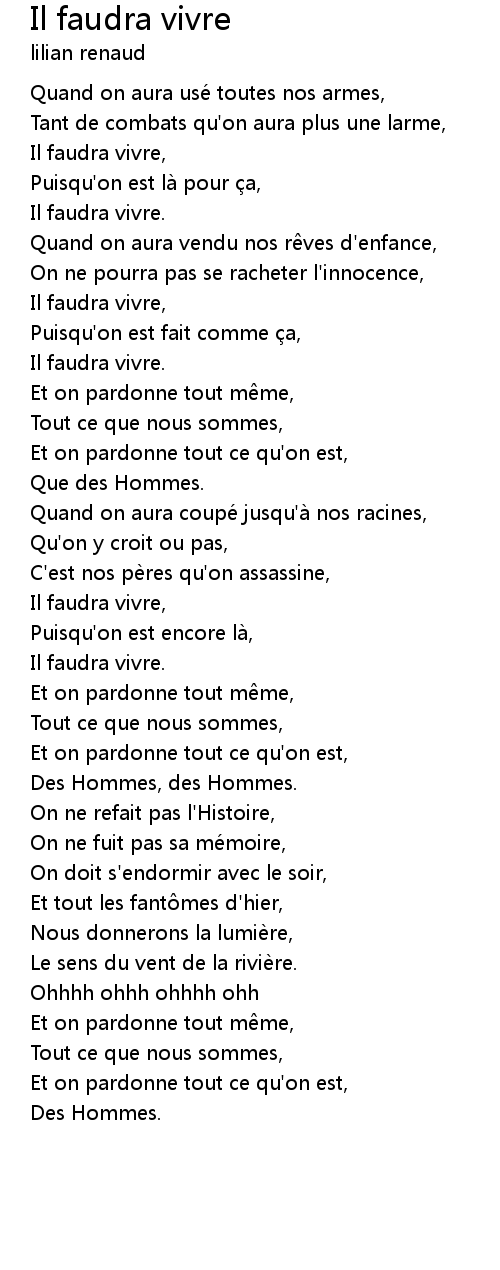 | [01:56.000] | On doit s' endormir avec le soir, |