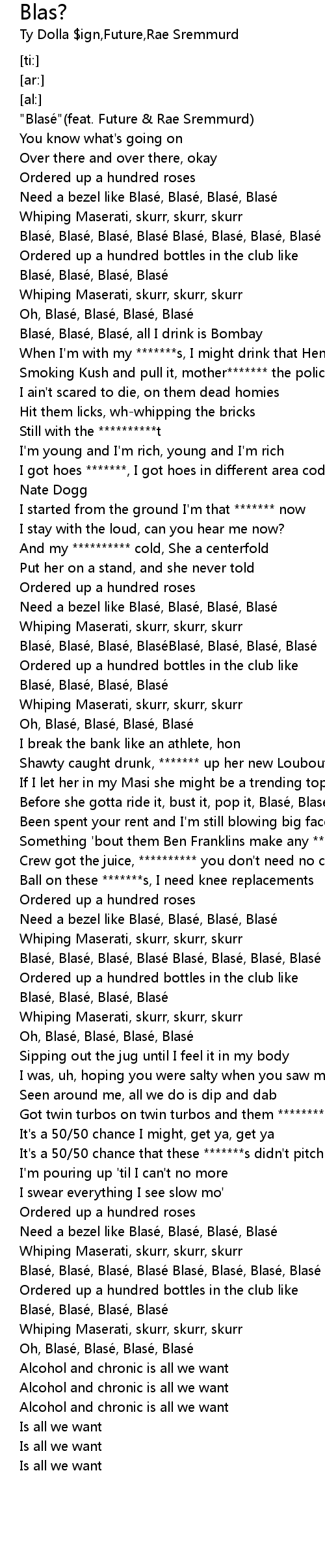 | [00:00.00] | " Blasé" feat. Future Rae Sremmurd |
