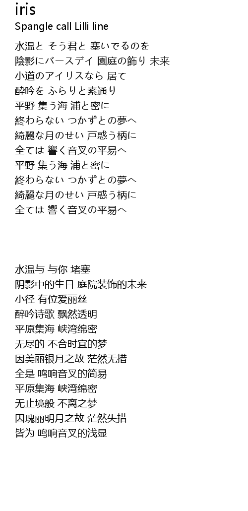 | [00:44.97] | 陰影にバースデイ 園庭の飾り 未来 |