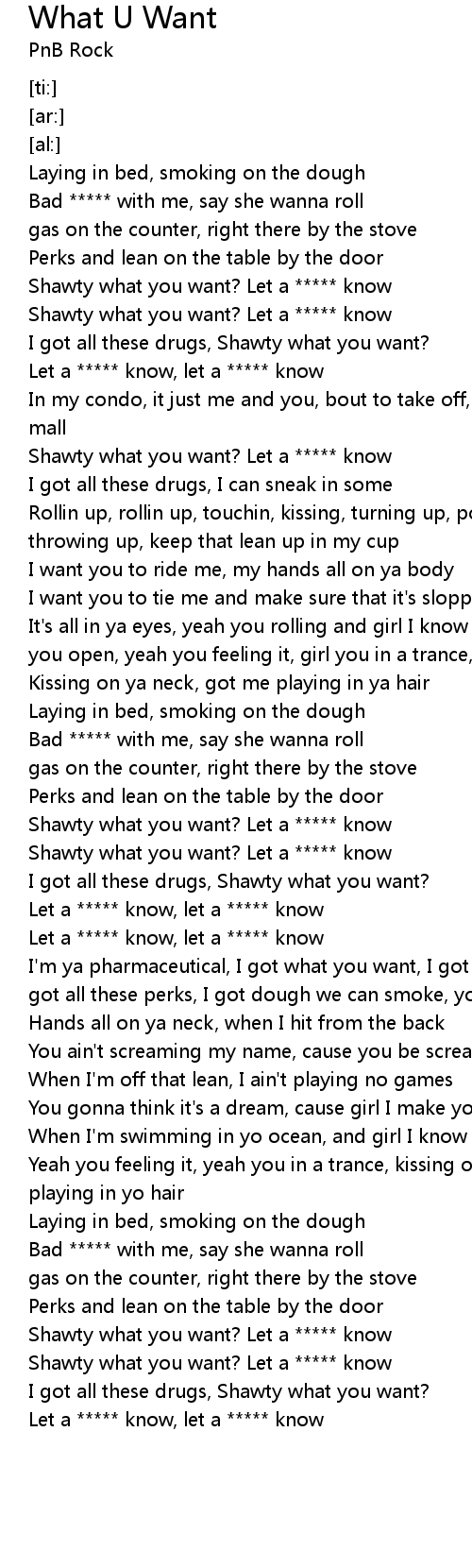 | [00:41.50] | Shawty what you want? Let a ***** know |