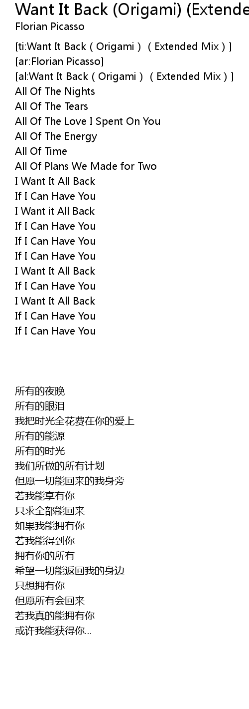 | [ti:Want It Back(Origami)(Extended Mix)] | |
