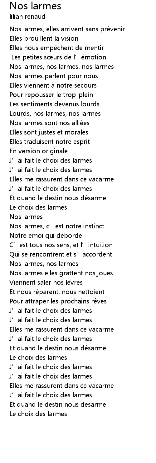 | [00:30] | Nos larmes, nos larmes, nos larmes |