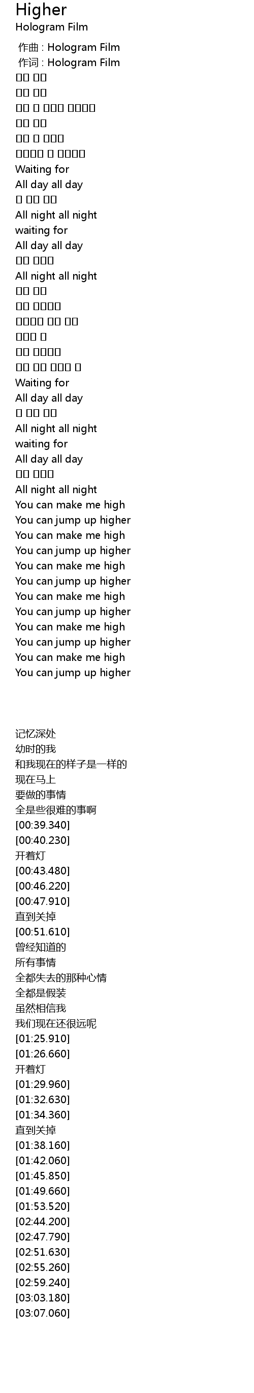 作词 : Hologram Film |