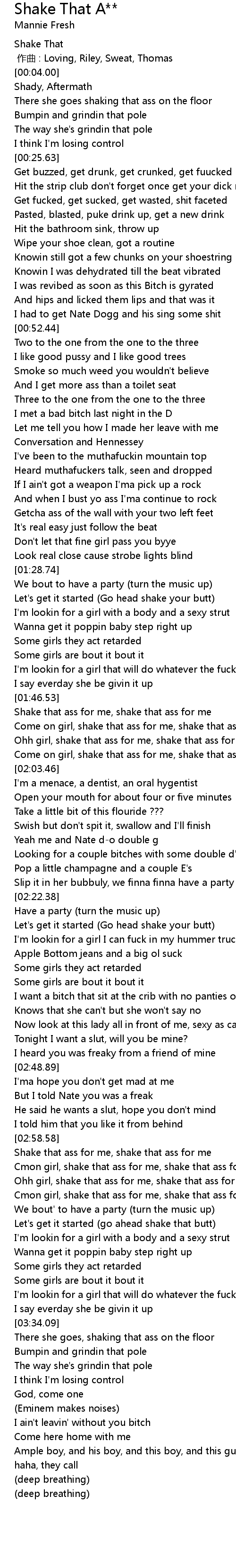 | [03:00.24] | Shake that ass for me, shake that ass for me |
