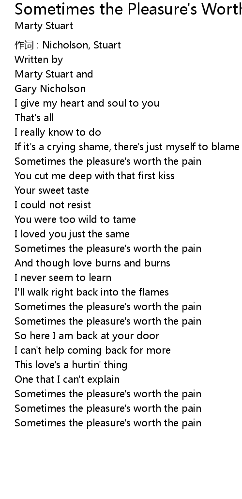 | Sometimes the pleasure's worth the pain |