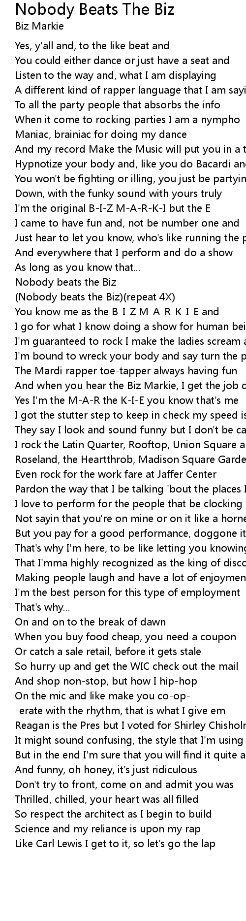 [01:07.07] (Nobody beats the Biz)(repeat 4X)