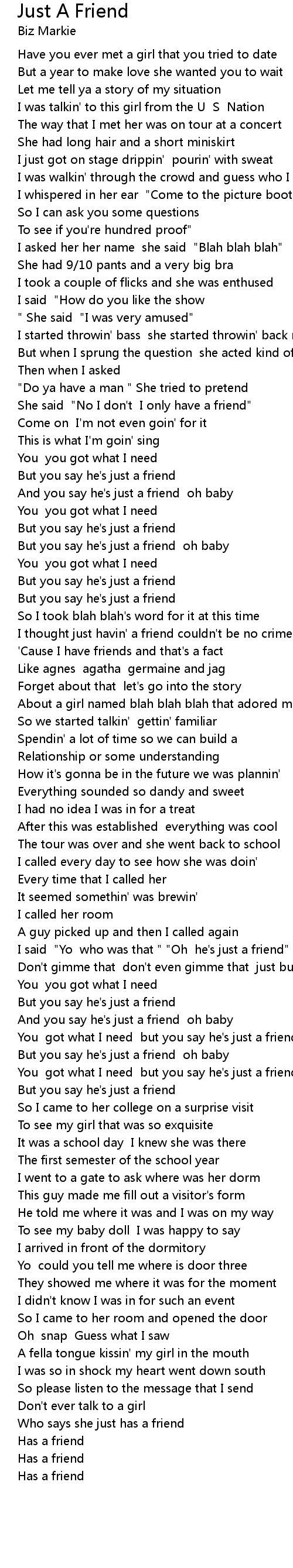 Just A Friend Lyrics