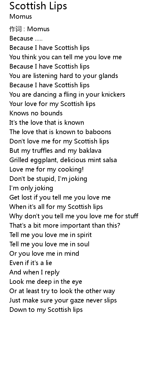 | Don' t love me for my Scottish lips | |