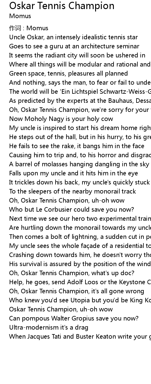 | Oh, Oskar Tennis Champion, uh-oh wow | |