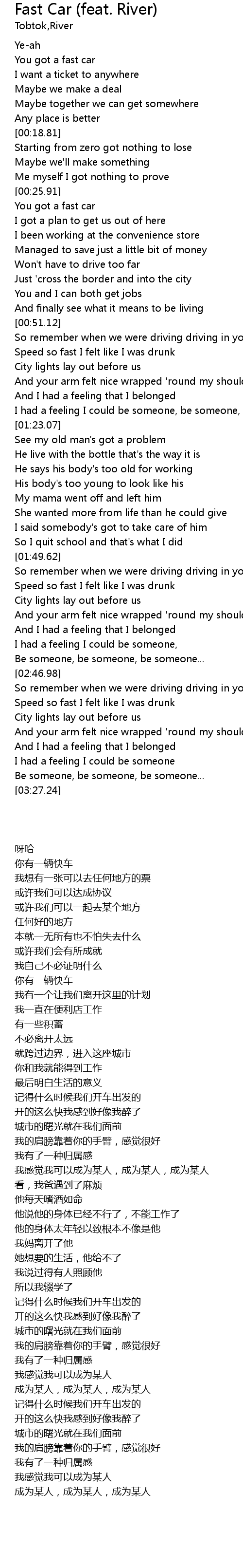 | [02:50.52] | Speed so fast I felt like I was drunk |