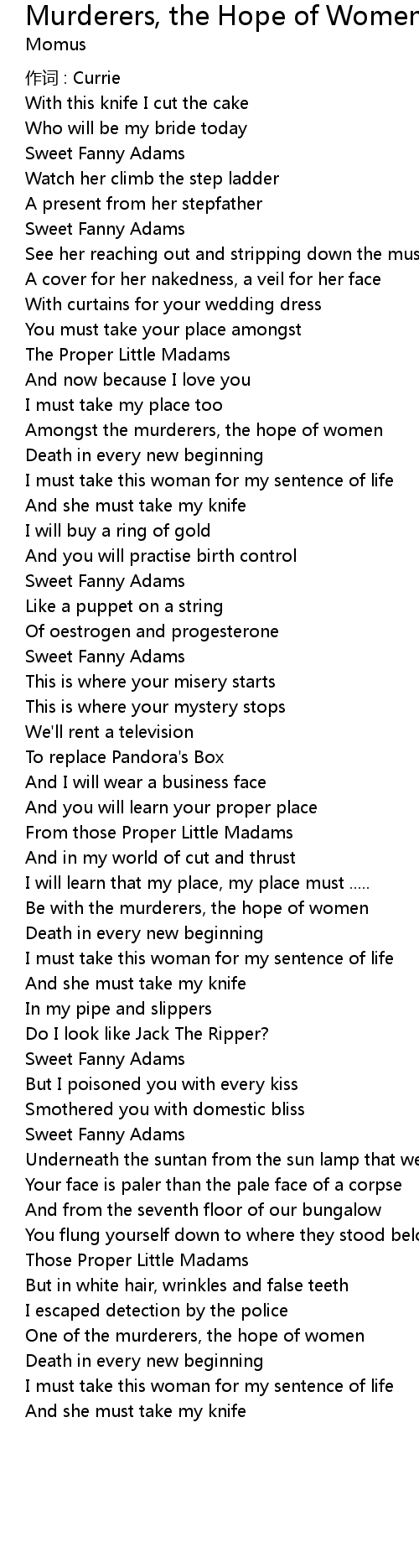 | Song | Murderers, the Hope of Women |