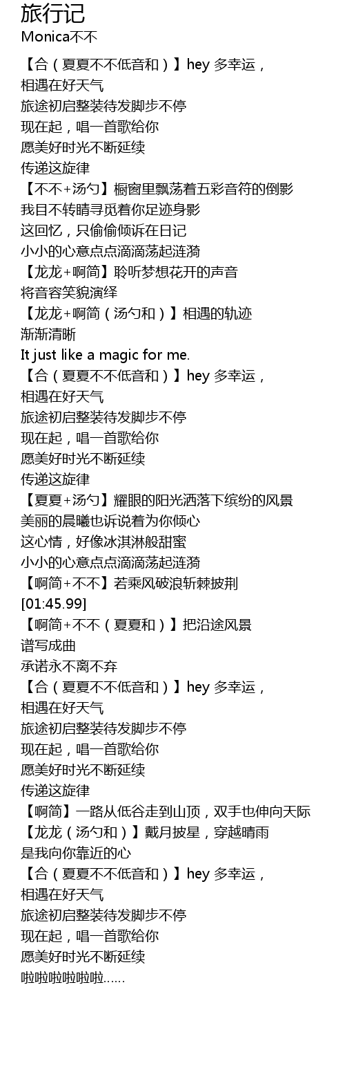 | [02:24.86] | 【合(夏夏不不低音和)】hey 多幸运, |