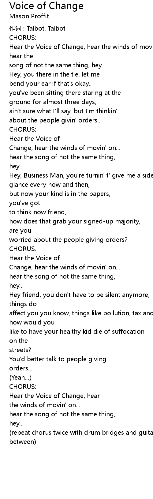 | Hear the Voice of Change, hear the winds of movin' on... | |