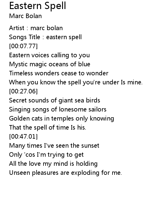 | [00:00.83] | Artist: marc bolan |