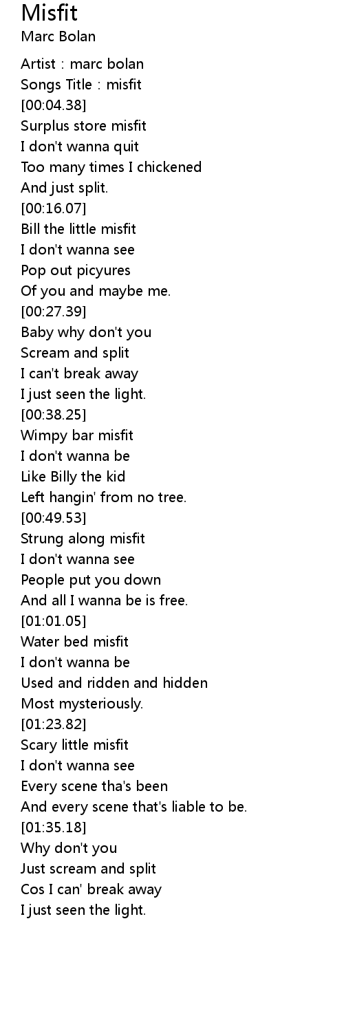 | [00:02.53] | Songs Title:misfit |