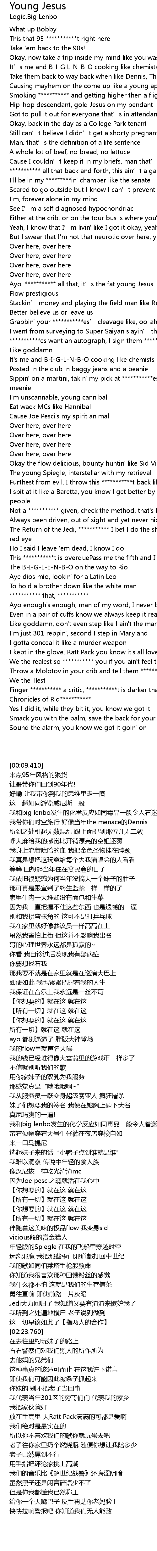 | [01:20.810] | Ayo, *********** all that, it’s the fat young Jesus |