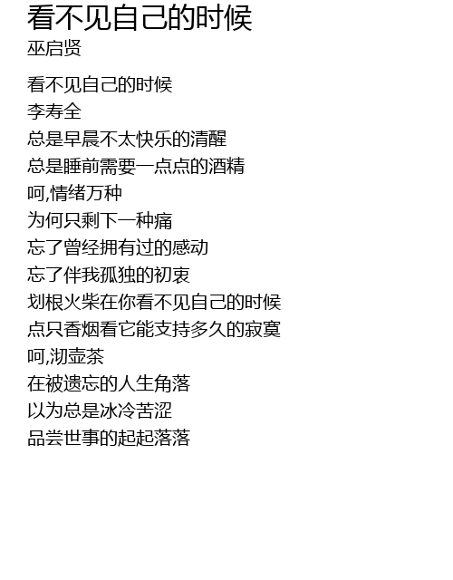 | [00:04.68] | kàn bú jiàn zì jǐ de shí hòu |
