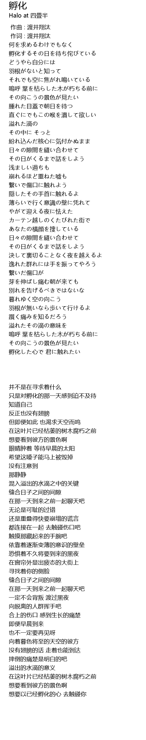 | [04:57.600] | 孵化した心で 君に触れたい |
