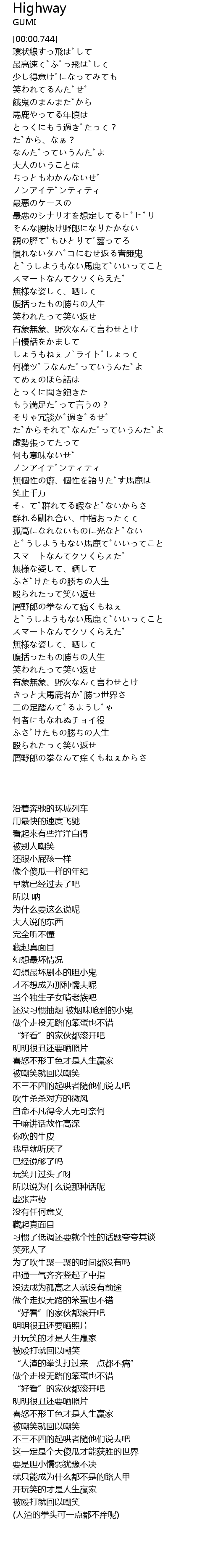 | [03:36.381] | ふざけたもの勝ちの人生 |