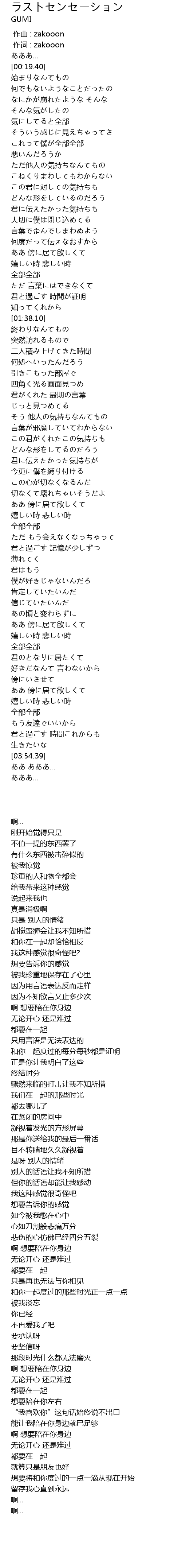 | [00:01.00] | 作词 : zakooon |