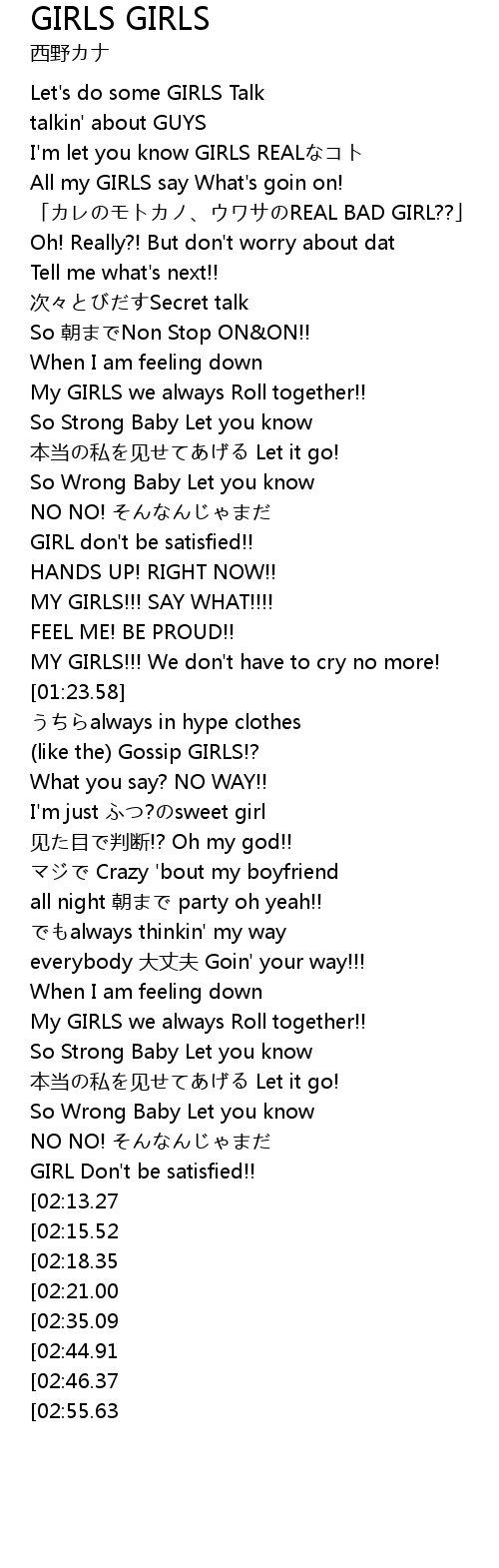 | [00:25.49] | Let' s do some GIRLS Talk |