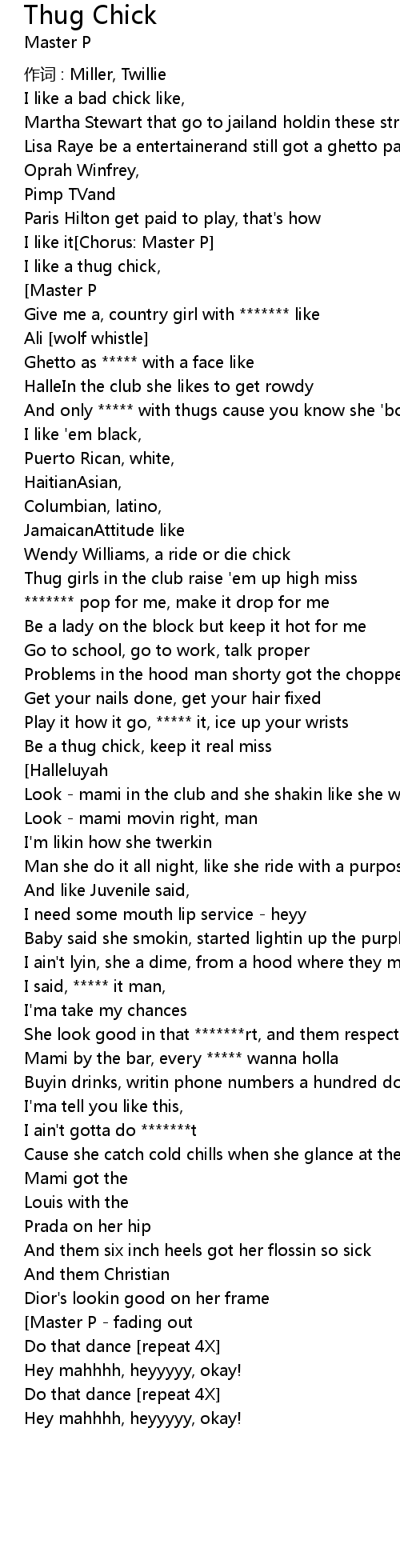 | I like how you move, keep doin yo' thang[Chorus][Master P - fading out] | |