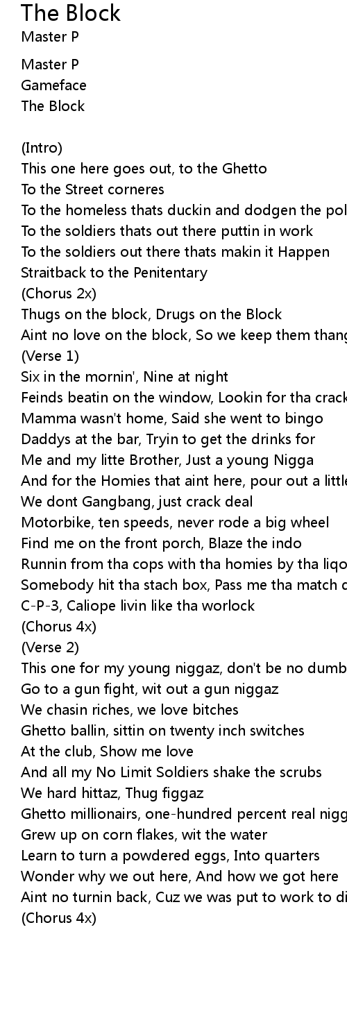 | Aint no love on the block, So we keep them thangs cocked | |