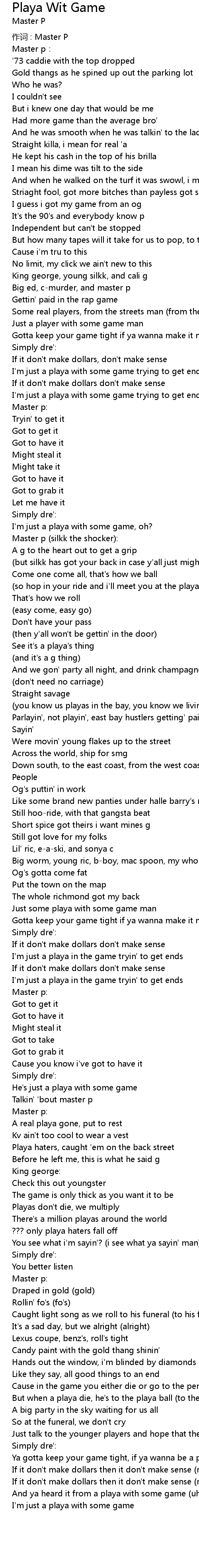 | Ya gotta keep your game tight, if ya wanna be a playa | |