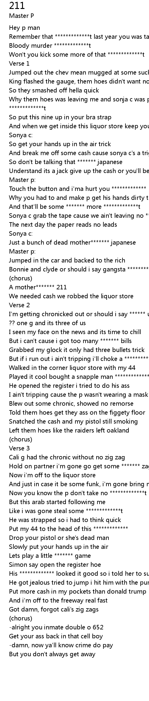 And break me off some cash cause sonya c's a trigger happy ************* |