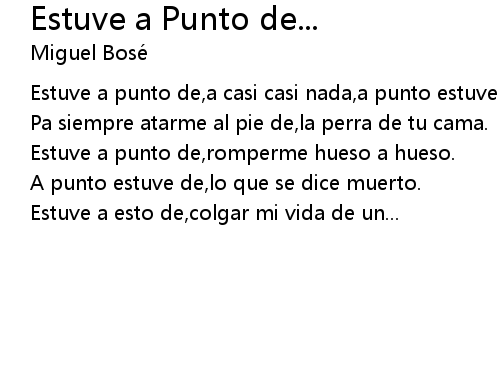 | Song | Estuve a Punto de... |