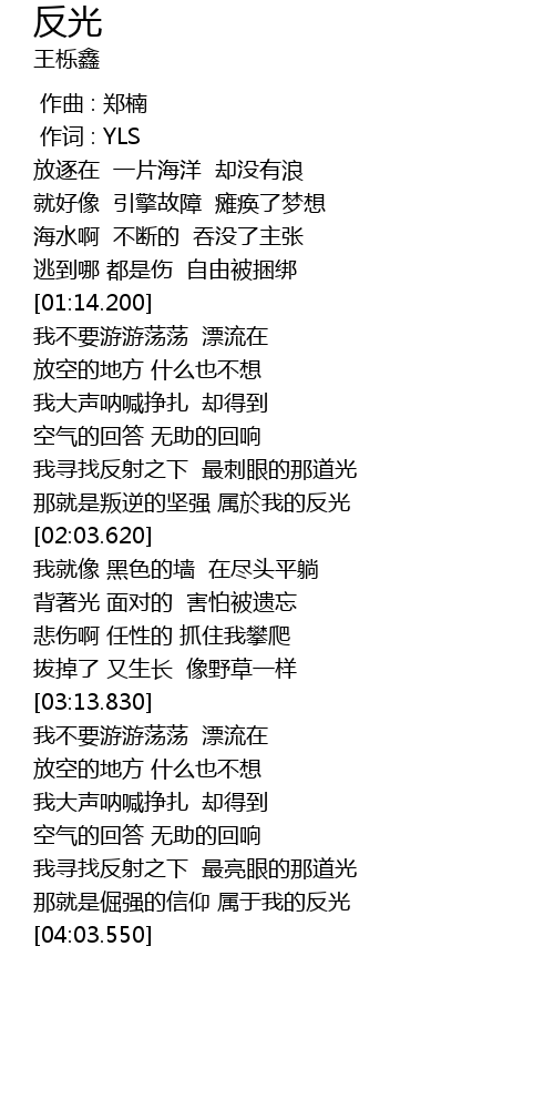| [03:49.970] | 那就是倔强的信仰 属于我的反光 |