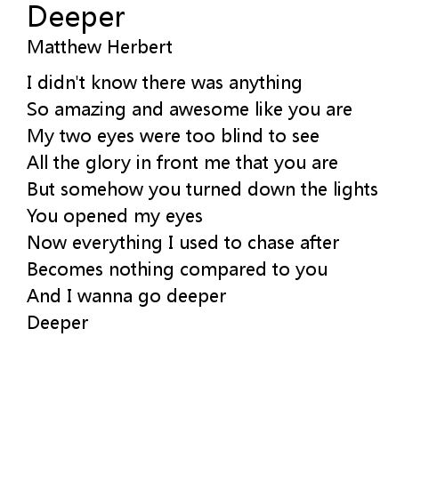 | And I wanna go deeper | |