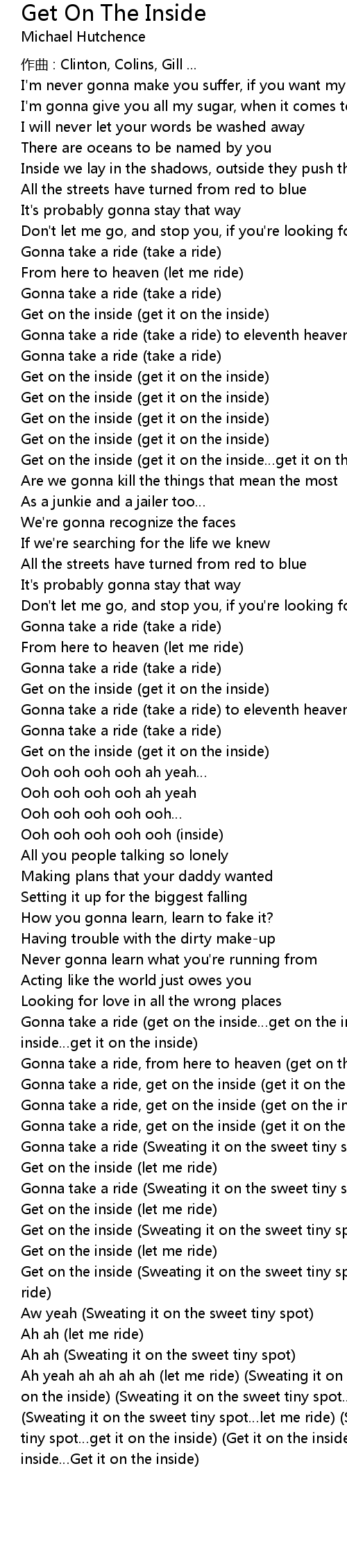 | Gonna take a ride get on the inside get on the inside get on the inside get it on the inside | |