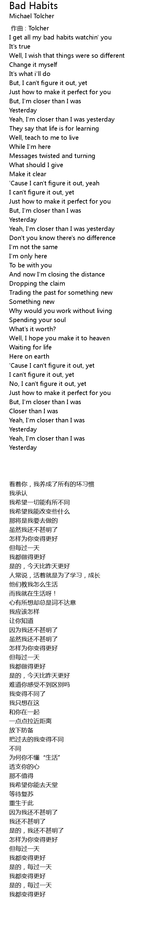 | [02:06.44] | Yeah, I'm closer than I was yesterday |