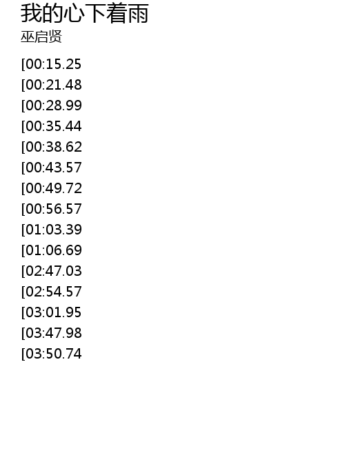 | [03:24.13][02:54.57][01:21.45] | 哦~,我的心也下着雨 |