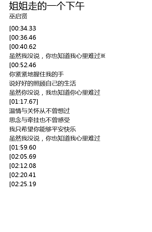 | [02:53.36][00:34.33] | 在你离开的那一个下午 |