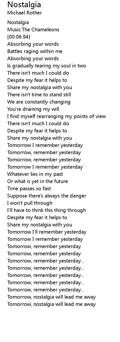 [04:19.14] Tomorrow, nostalgia will lead me away