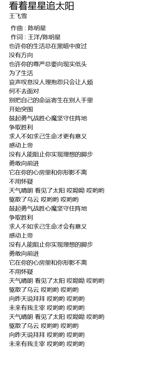 | [02:21.68] | 天气晴朗 看见了太阳 哎呦呦 哎哟哟 |