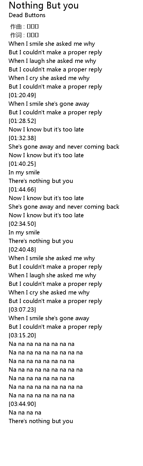 | [02:44.57] | When I smile she asked me why |